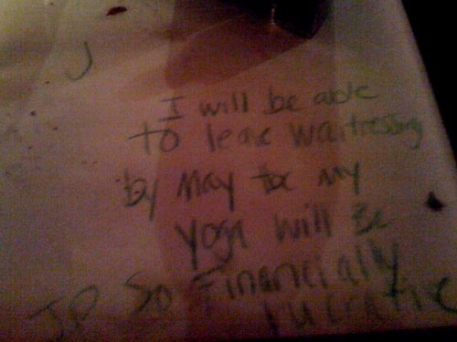 ( I believe I finally left waitressing that following November, a few months later than I wrote. I could have left sooner. I was too scared. When I finally left it completely, and let my fears about the unknown fall to the wayside, my world opened up.)