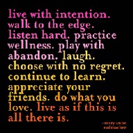 This is not a suggestion that you live without consequence, but rather with intention, with love, and with passion. Do what makes you thrive, what inspires you, what makes you come alive!