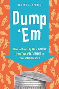 Jodyne Speyer: Sure! I wrote Dump ‘Em: How to Break Up With Anyone From Your Best Friend to Your Hairdresser for totally selfish reasons. I hadn’t the faintest idea of how to break up with people. I had always been the classic avoider. But as we all know, avoiding a person doesn’t mean they magically go away. I was sick of living in the grey, so I went in search of a book that would teach me how to do it. Shockingly there was no such book. So I decided I would devote one year of my life and interview therapists, doctors, lawyer, you name it; while at the same time interview everyone I knew and asked them to share their stories. By the end of the year, I learned that not only is there really a way to kindly and respectfully end a relationship, but that it only requires a few simple steps!