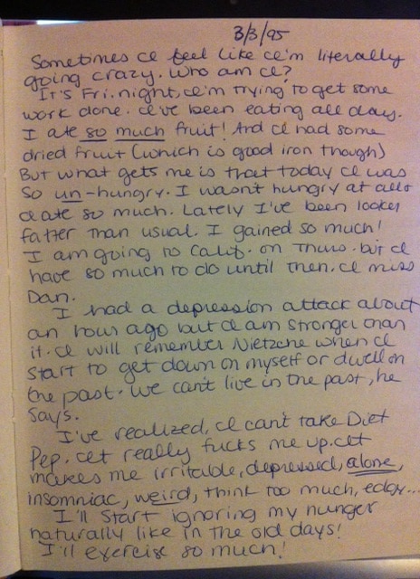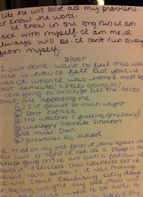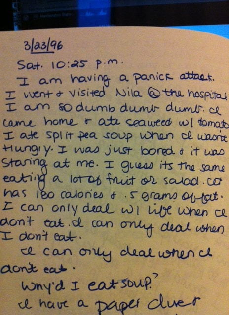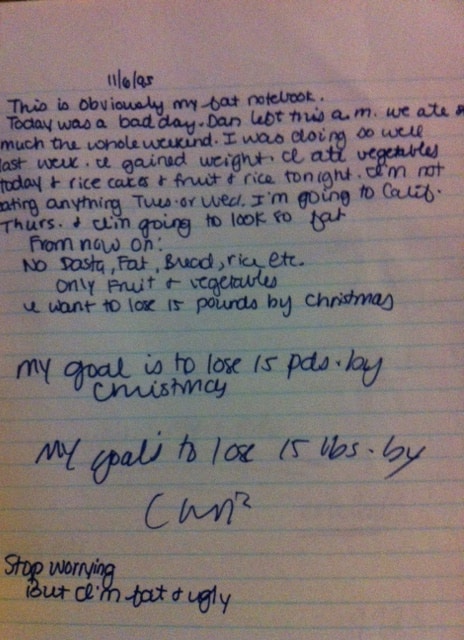 Thank you for sharing such personal material, it helps the world by doing that. This reminds me of some of my journal entries as a high school senior, though I wasn’t ‘anorexic’ – your jounral writings reminded me of mine, I would write what I ate and that I felt fat so often. So sad really, I was just a late bloomer. My high school boyfriend would tell me I was so beautiful, but I would sulk. (maybe it’s just those hormones! :)) It seemed the trend for our circle of 8 ‘ popular it’ girls to starve ourselves into our bikinis, we lived in Florida and were always at the beach. My best friend actually was anorexic-bulimic…suffered from this for years and years, and since her parents locked up their kitchen cabinets at night, padlocks hanging off the pantry, I would let her come to my house and eat all our food. Then throw it up in my bathroom. So she wouldn’t get in trouble.