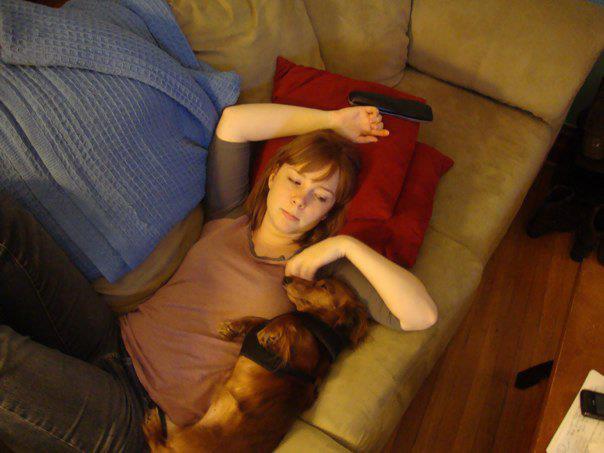 Before this, nature was just a vacation for me, a spot you camp three days out of the year. Wisconsin has a lot of hills and trees. In the summer, everywhere you go is green. Even ethically. Recycling is a big deal. Eating locally grown, organic food picked by someone’s plant-loving hands is a big deal. Keeping communities, towns and cities litter-free is a big deal. Coming from Chicago, life here was easy. It was slow and swelled peacefully and I tried to relax into the setting, which, for a little while, created a whole other form of anxiety. I just kept telling myself, maybe this is a good thing, exactly what I need. I was entranced during the first few months. In the Fall, all that green slid into a watercolor painting. The hills were blended reds and golds and yellows and browns. I had trouble driving anywhere. I wanted to park on the side of the road and sit in a ditch. I wanted to watch the shifting colors. I could feel the city draining from my muscles. Molly was able to roam outdoors without worry. I witnessed her experience a happy dog life and was excited to be able to do that for her. She rolled and rolled in the grass, rubbing the sun into her skin. Her facial expressions changed. A sparkle had been returned. Connected as we were, I felt it with her. Molly had been my consolation prize from an early adulthood relationship gone wrong. He had grown up with dachshunds. He loved their awkward bodies and the way they waddled and the sweetness in their eyes. He wanted a purebred with perfect, historical blood, something to brag about. I wanted a doberman or a retriever or a pit bull or a great dane or a bull mastiff or a combination of all of those things and I wanted to rescue them. A big, muscular dog, all sharp edges and gleaming teeth. Someone I could walk around Chicago with at 3am and feel safe. Someone to take care of me too. But he had the money and the car, so we got a dachshund. When he got back, prize in hand, he told me of how he chose Molly. He had met the breeder in the parking lot of a gas station and when she opened the back hatch of her car to give him his choice of puppies, a tiny ball of red hair, all nose and ears and elongated spine, rolled off the edge and onto the ground. I watched our new puppy settle on the living room carpet, staring all around, seeing things I knew I couldn’t see. She looked straight at me. This is my home now. Here I am. Make room for me. I loved her immediately and when the boyfriend left, Molly stayed. Six years later, she came to Wisconsin with me, my little adventurer. I felt safe having her with me, like I’d taken everything I knew and had been through inside of this stubborn, sweet little dog. She knew everything about me and still trusted me. I didn’t know how this would work, if I was making the right decision, if I’d wind up in a tighter spot than before or if I’d ended up finding our happiness. But having Molly around curbed the anxiety. I’d always have her. Through all of my direction-switching and general confusion in life, I’d managed to keep another living being healthy and happy and alive. Through all of my flailing, I still held onto that success.