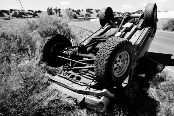 Yellow lines blur around a sharp bend. Oncoming vehicle red or orange spooks me and I swerve my Jeep off the road. Slow motion skid on dirt, hello sagebrush, windshield shattering. We’re crashing, tipping, rolling. My arm reaches out to protect her, and I promise, “WE ARE OKAY. WE ARE NOT HURT.”