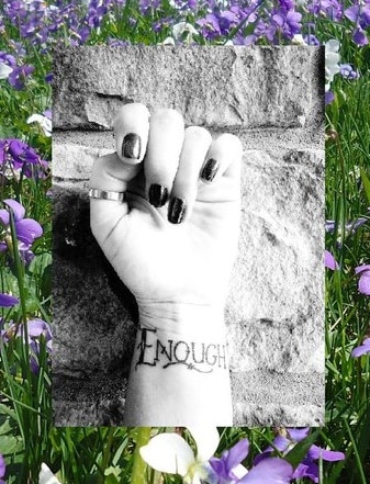 I sat in the car with a pen and a bank deposit slip, and started numbly scribbling single words to ink into my wrist. About three words in, I had it. ENOUGH.