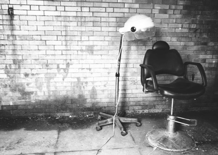 The landlord had delivered bad news along with the apple pie this time. Daddy had to move. He had to leave his barbershop and make way for someone else. His revolving red, white, and blue barber pole would come to a halt to make room for a new tenant, a new game. The fact that it was a Super Cuts only added salt to the wound. I could hear him screaming “Super Cuts! They don’t know how to cut hair, they just want money. They take five minutes! God dammiteh!” His voice thundered through our flat. My sister slunk into our bedroom and hid under her covers. I crept up toward the room where my parents stood. My mother in her long velour yellow house robe and brown slippers, standing with her hands clenched around a dishtowel, took small steps backward as my father raged.