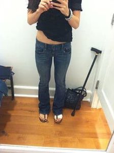And this was me at my skinniest, 50 pounds ago: (I weighed about 110 pounds and wore a 00 and was excited about having to shop in Abercrombie Kids upon losing more weight.)