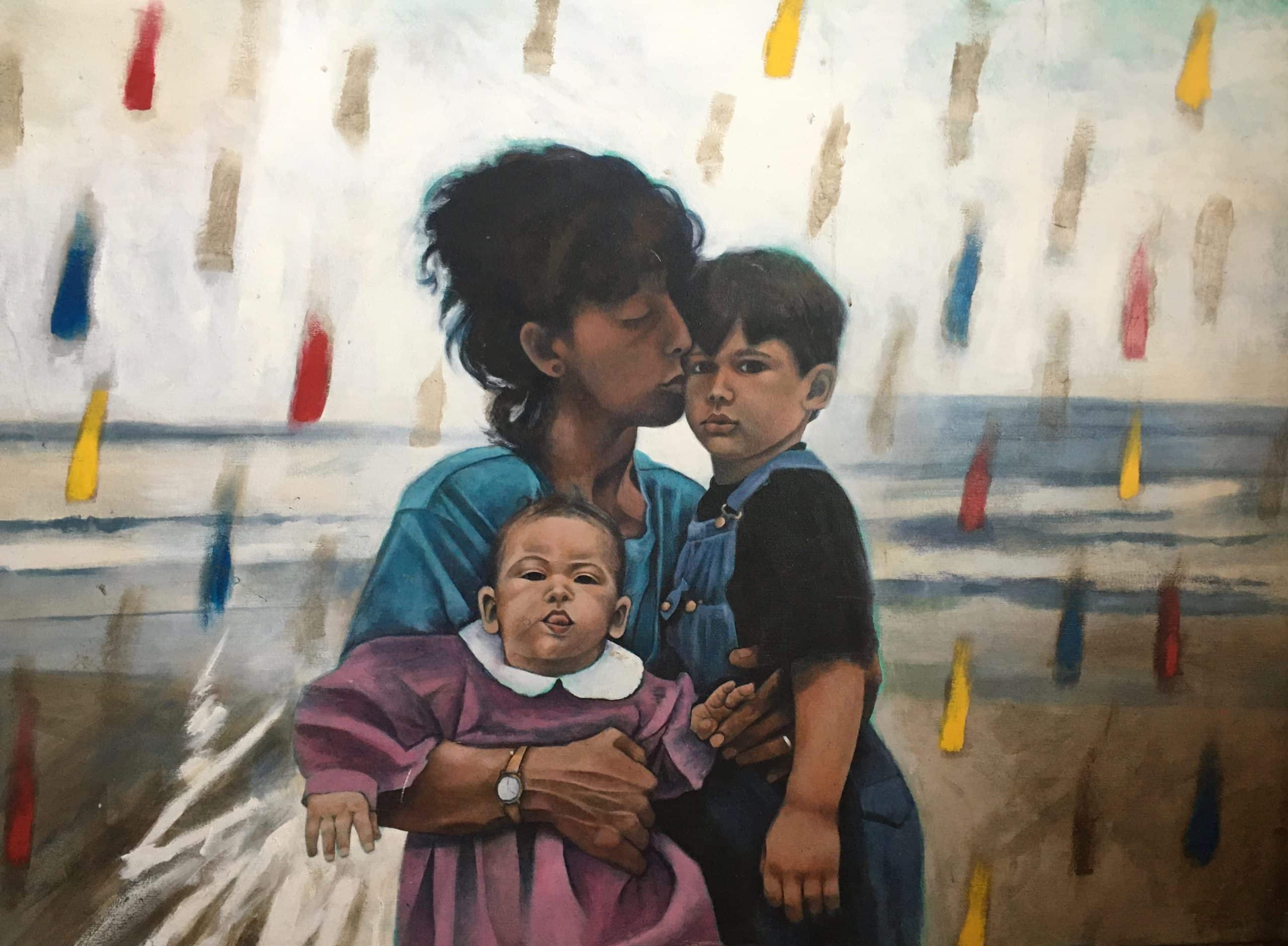 Then, in the window, I can see Nick and his sisters painting in their father’s studio, the plywood floor a medium gray and the walls pure white in order to contain the colors of the paintings with neutrality. Against this palliative backdrop, my children are exuberant, messy, incongruous. Small pots of tempera are pushed to one side. The children lie on their bellies in baggy shorts, no shirts, legs flopping languidly as they move brushes across paper.